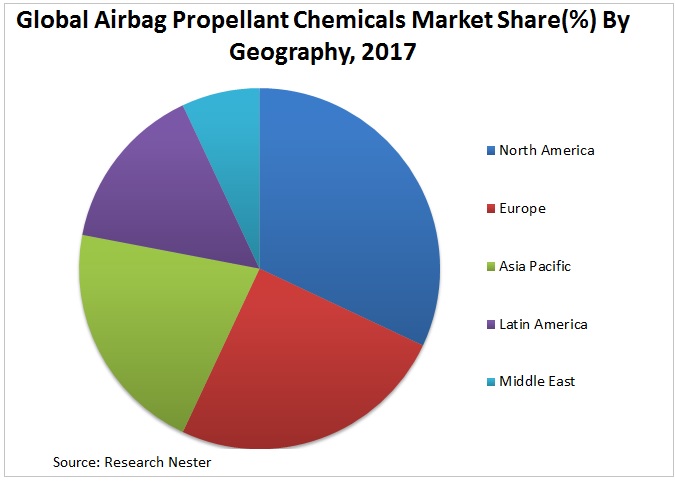 急速な都市化と、米国などの先進国および発展途上国のGDPのプラスの数値は、自動車生産におけるエアバッグ推進剤化学品市場の成長を繁栄させると予測されています。
