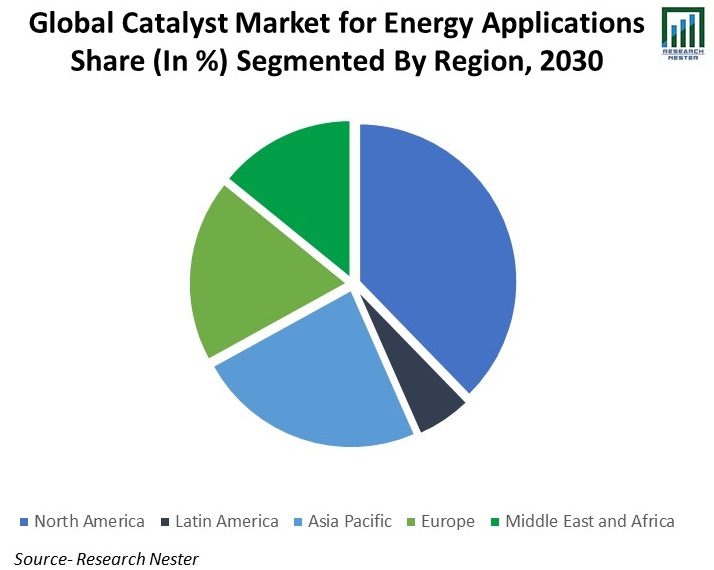 エネルギー用途の世界の触媒市場は、北米、アジア太平洋ラテンアメリカ、中東・アフリカ地域を含む5つの主要地域に地域別に分かれています。北米の市場は、この地域の石油・ガス産業の成長と主要な石油精製会社の存在を背景に、予測期間中に最大のシェアを獲得すると推定されています。さらに、この地域の多数の製油所が市場の主要な成長要因として機能すると推定されています。カナダは第4位の原油生産国であり、油井のシェアの10%以上を保有しています。一方、米国は石油精製製品の最大の生産者および輸出国の一つです。
