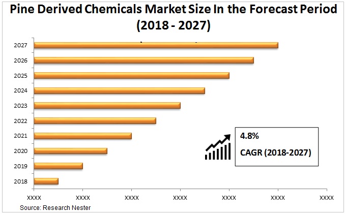 松由来の化学産業は、効率的な林業管理を背景に、ユニークな松の木資源の長期的な価値を最大化するために、持続可能な開発の最前線に立ってきました。パイン化学会によると、100億の松の化学産業が世界中に存在します。さらに、ビタミン自動車タイヤダイマーまたは三量体酸ステロールおよび他のものにおけるこれらの化学物質の用途は、予測期間にわたって市場をプッシュすると予想される。さらに、ガムロジン(GR)とガムテルペンチン(GT)に分離された「オレオレジン」を回収するために森林をタップするための松の木の応用は、市場の成長を助けることが期待されています。