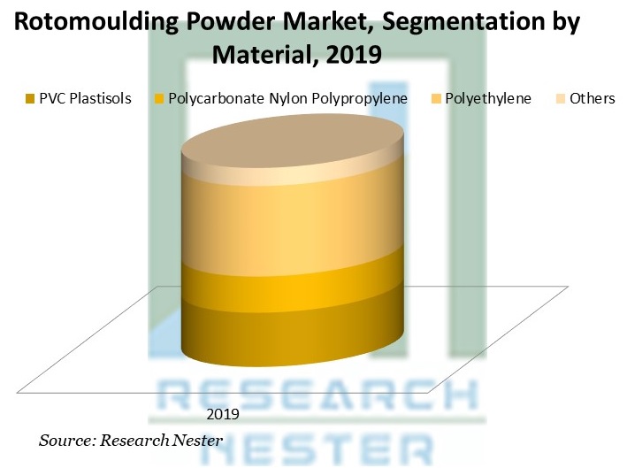 回転成形パウダーは主にポリエチレンから製造されます。 これは経済的な方法であり、室温では脆性が増加するため、物質の成形にかかる時間が短縮されます。 耐食性、耐クラック性、低温時でも高い強度、柔軟性などの効果的な特性は、ポリエチレンベースの製品の需要の増加につながり、最終的には回転成形用パウダーの市場の成長につながると予測されています。 。